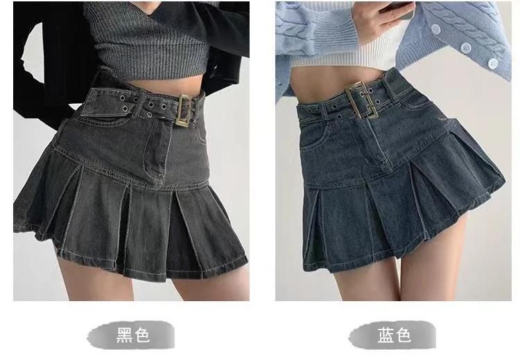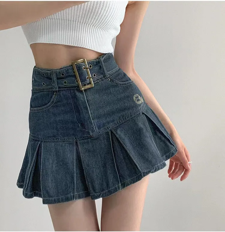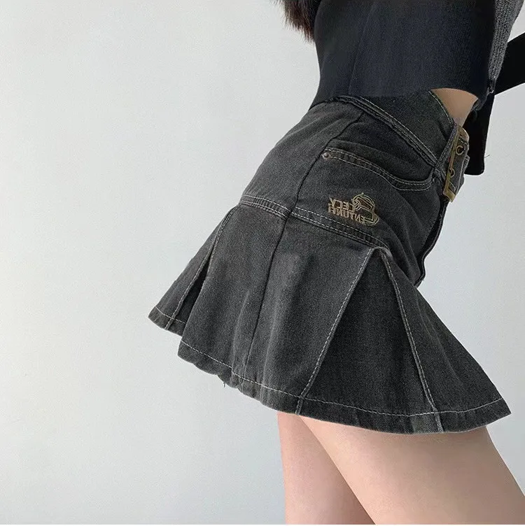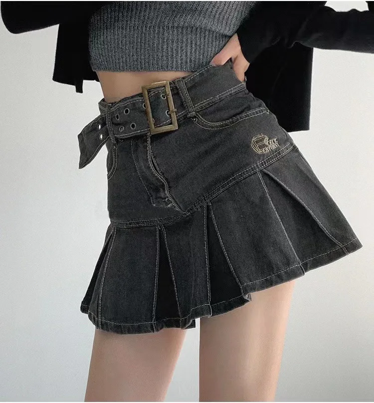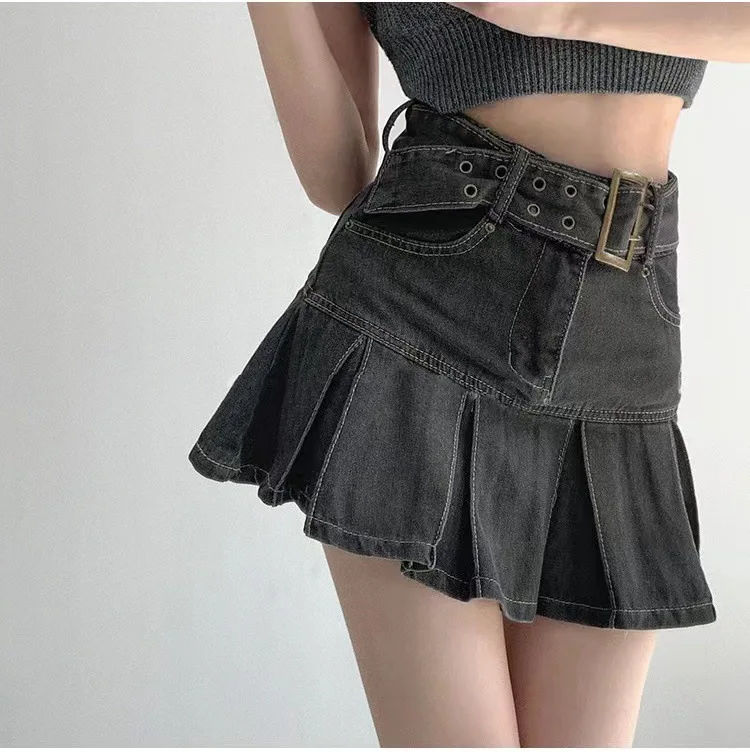 2023 nueva American Spice Girl Y2k verano Falda corta de mezclilla cintura alta Falda plisada Denim negro Sexy Jean falda faldas para mujeres