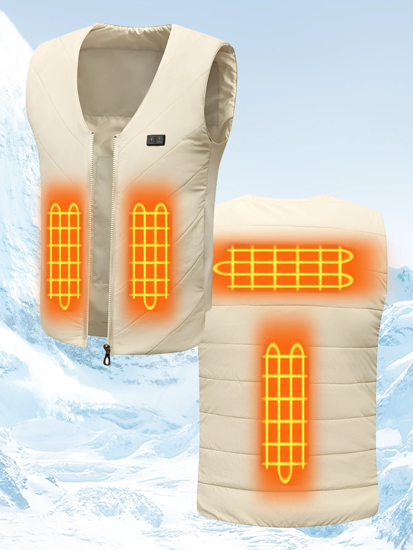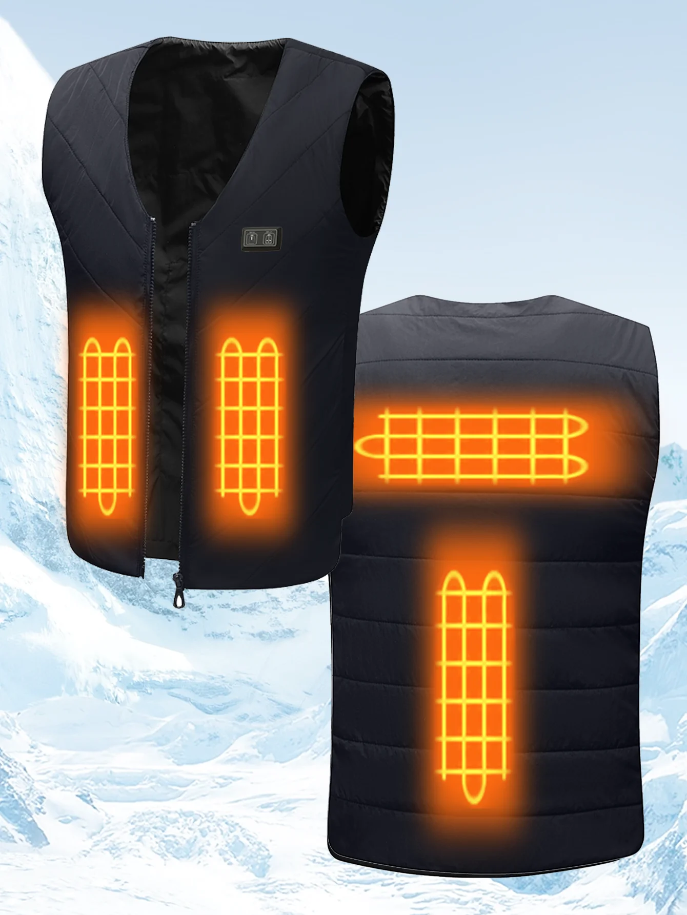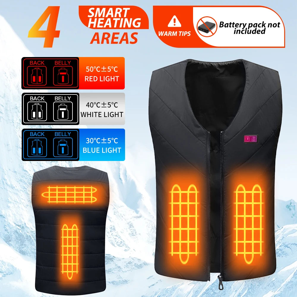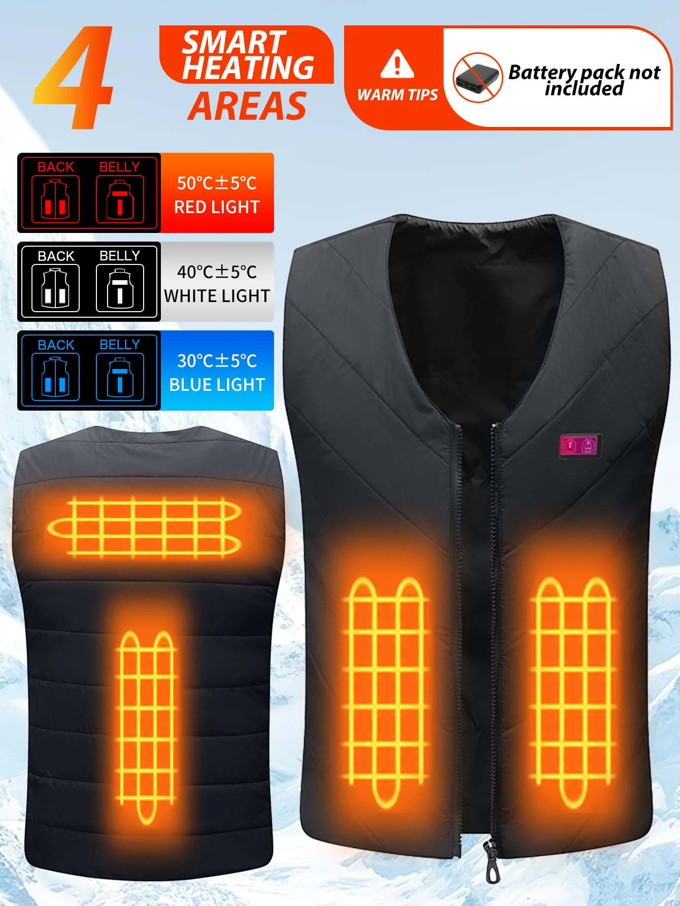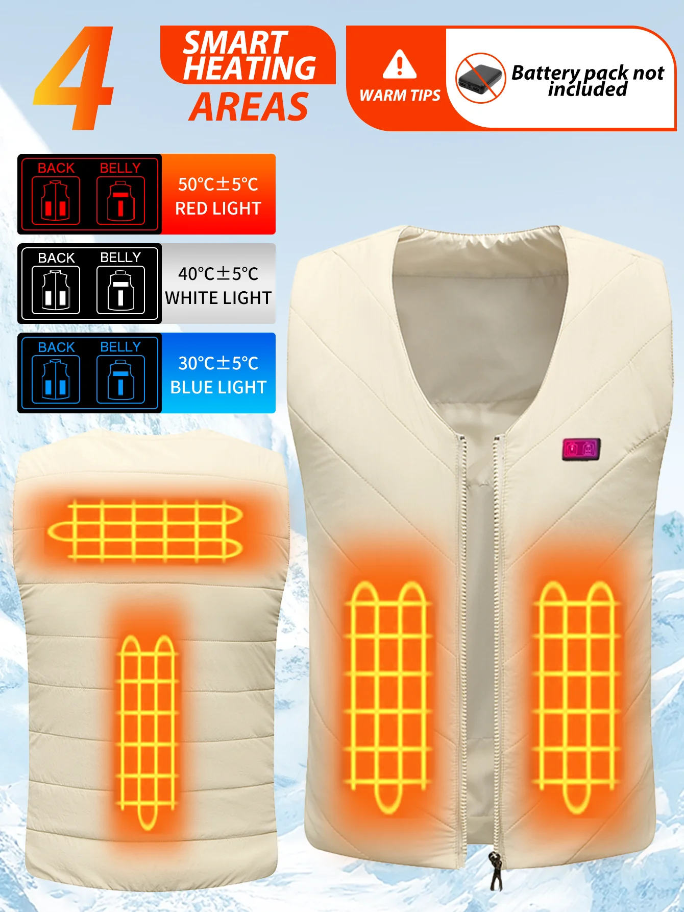 4 Areas Heated Vest Men Women Jacket Heated Clothes Casual V-neck USB Heated Vest Smart Control Temperature Heating Jacket Coat