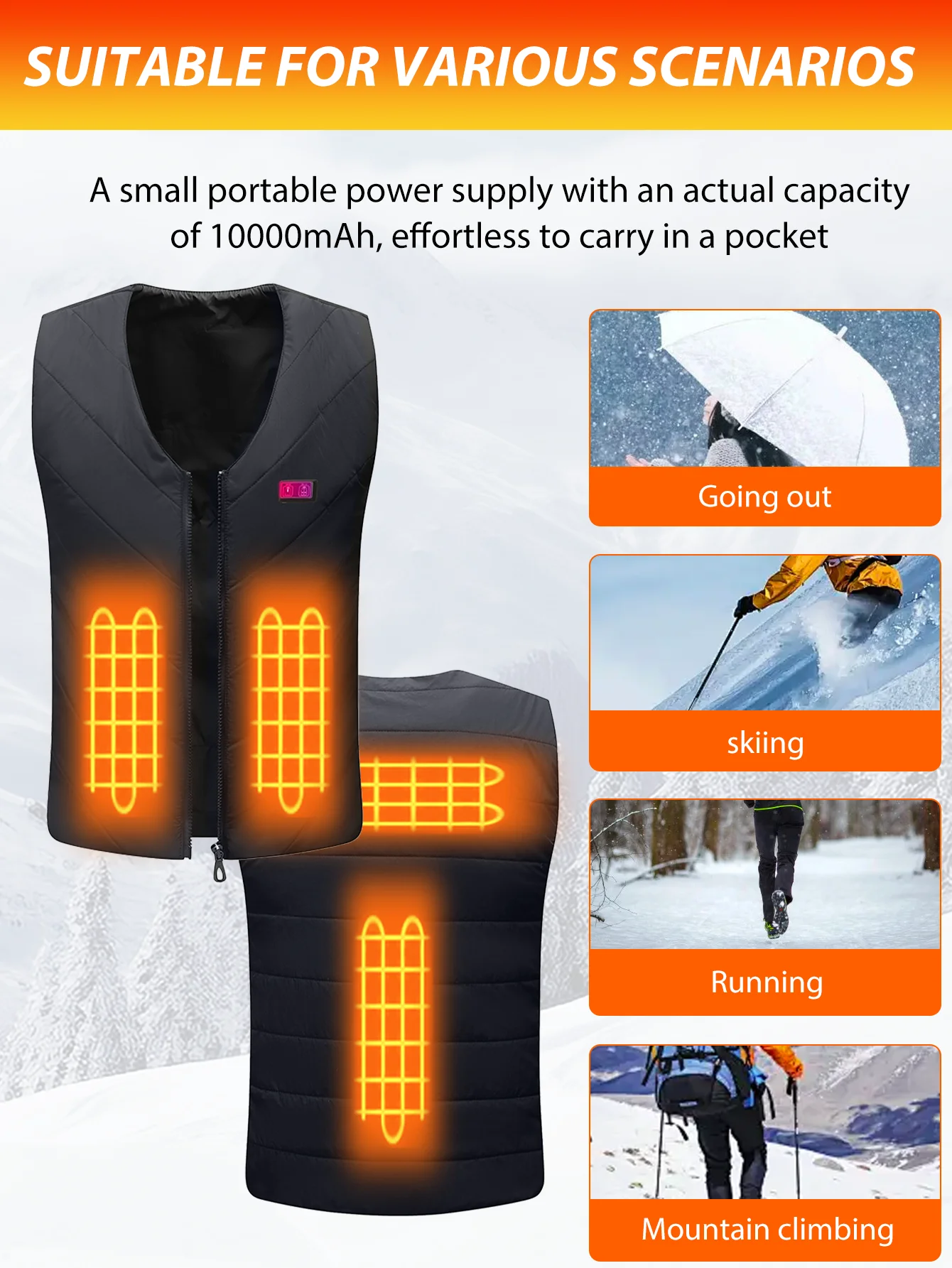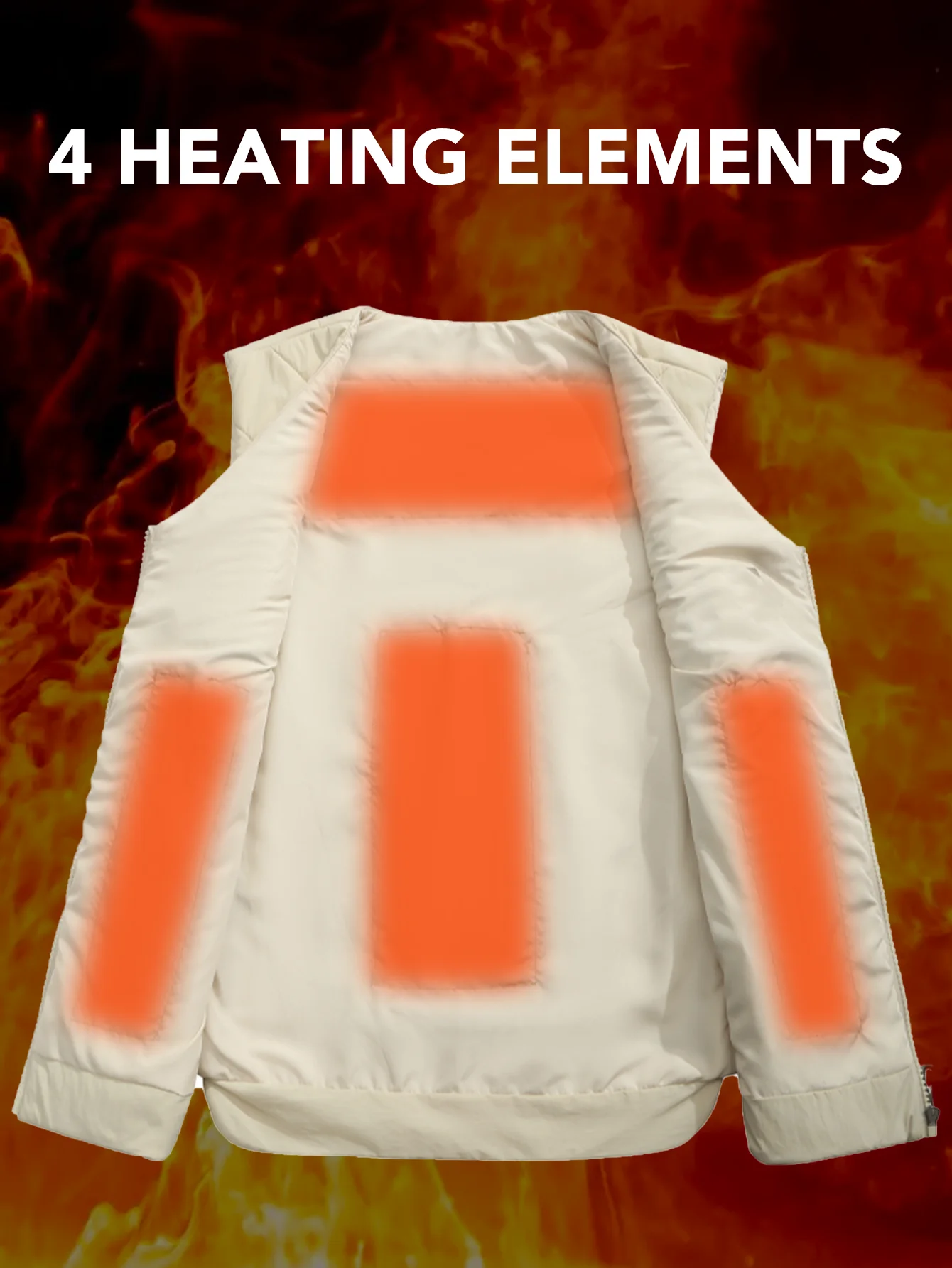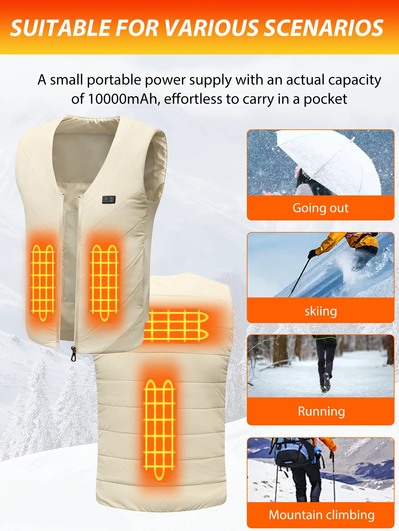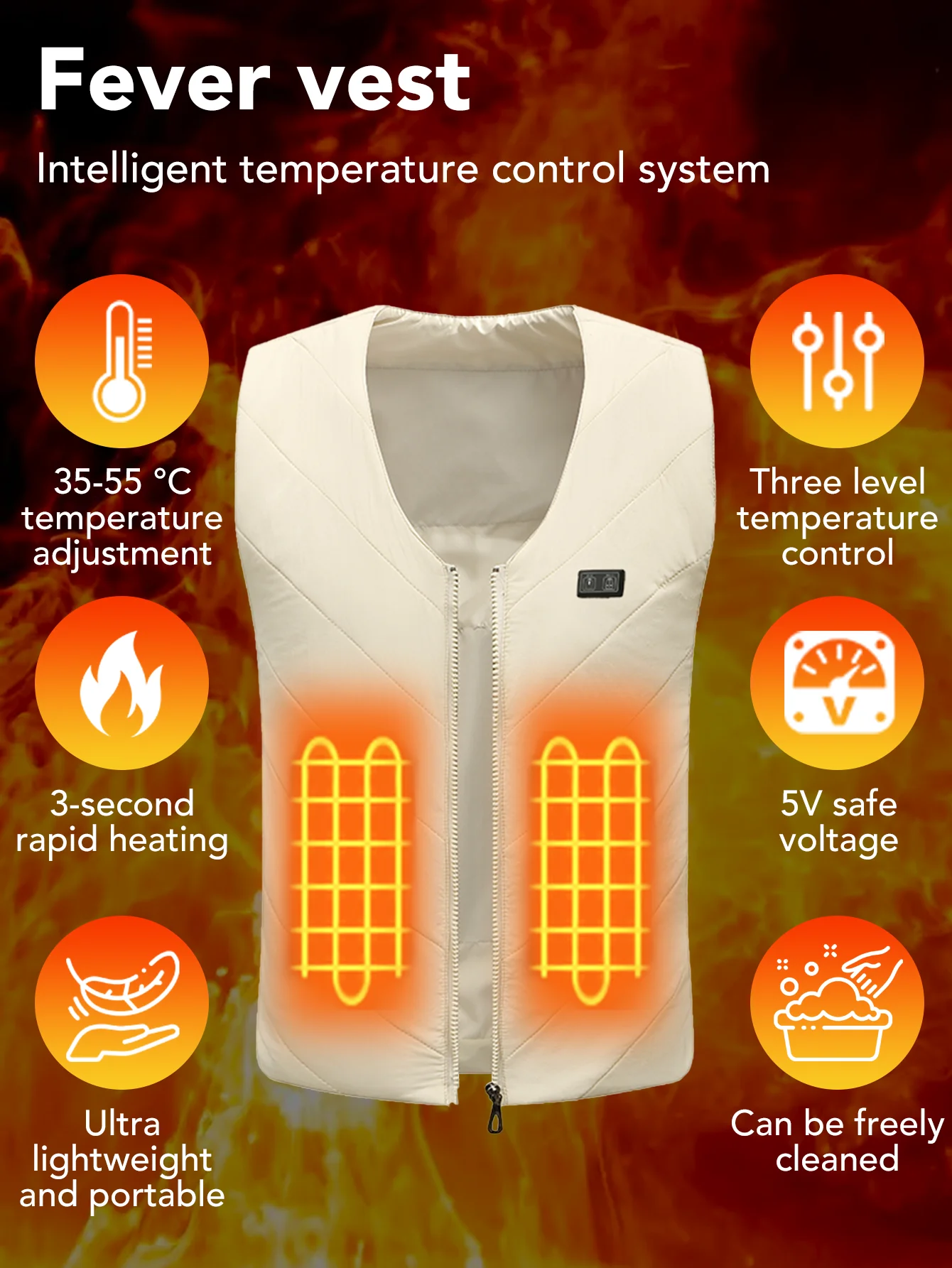 4 Areas Heated Vest Men Women Jacket Heated Clothes Casual V-neck USB Heated Vest Smart Control Temperature Heating Jacket Coat