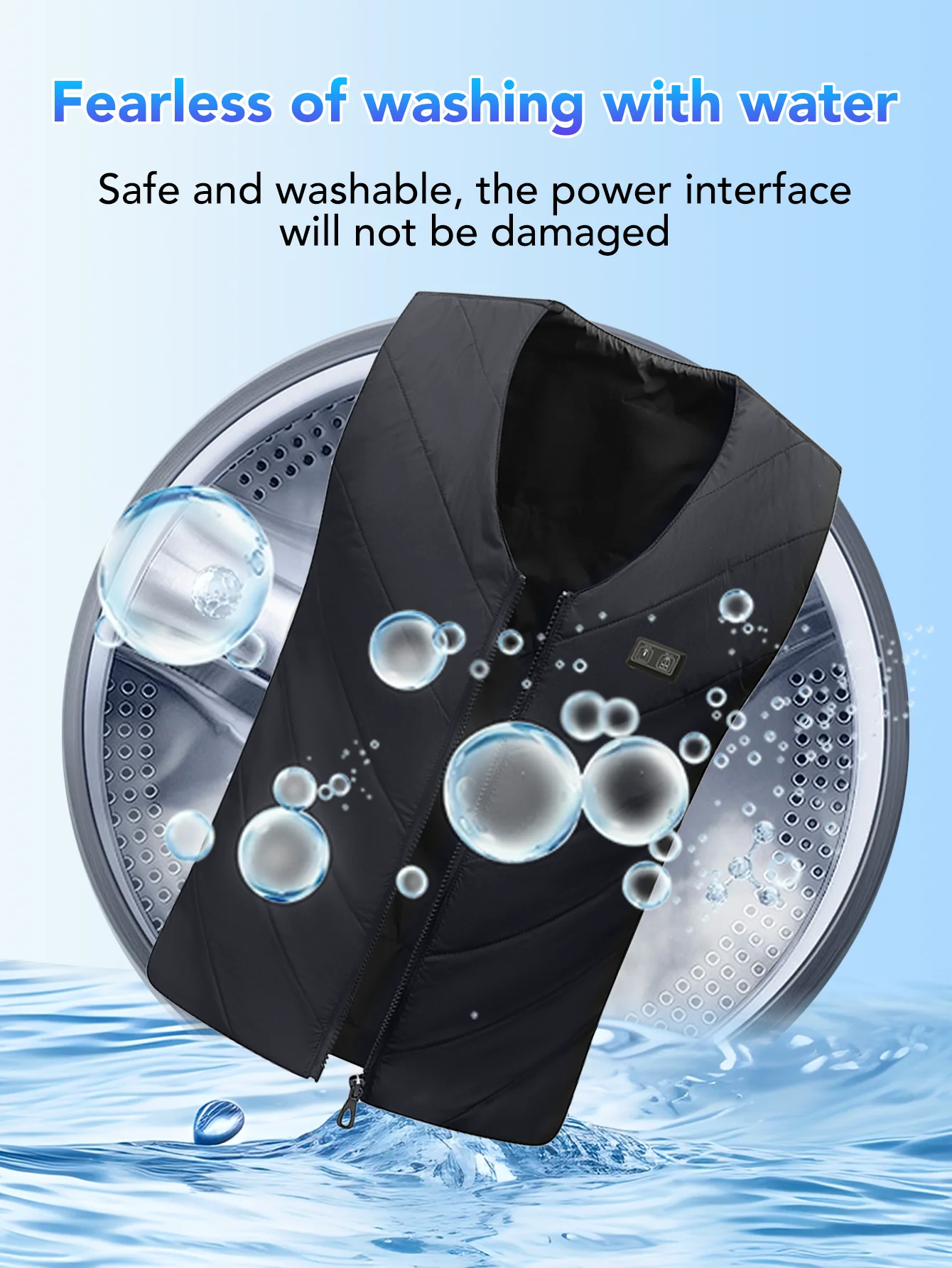 The cooling fanvest is easy to operate and safe. Machine washable, please don't forget to remove the fan assembly before cleaning.