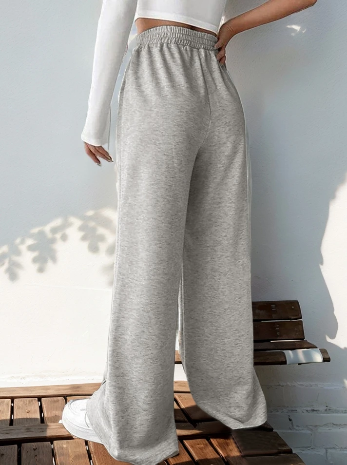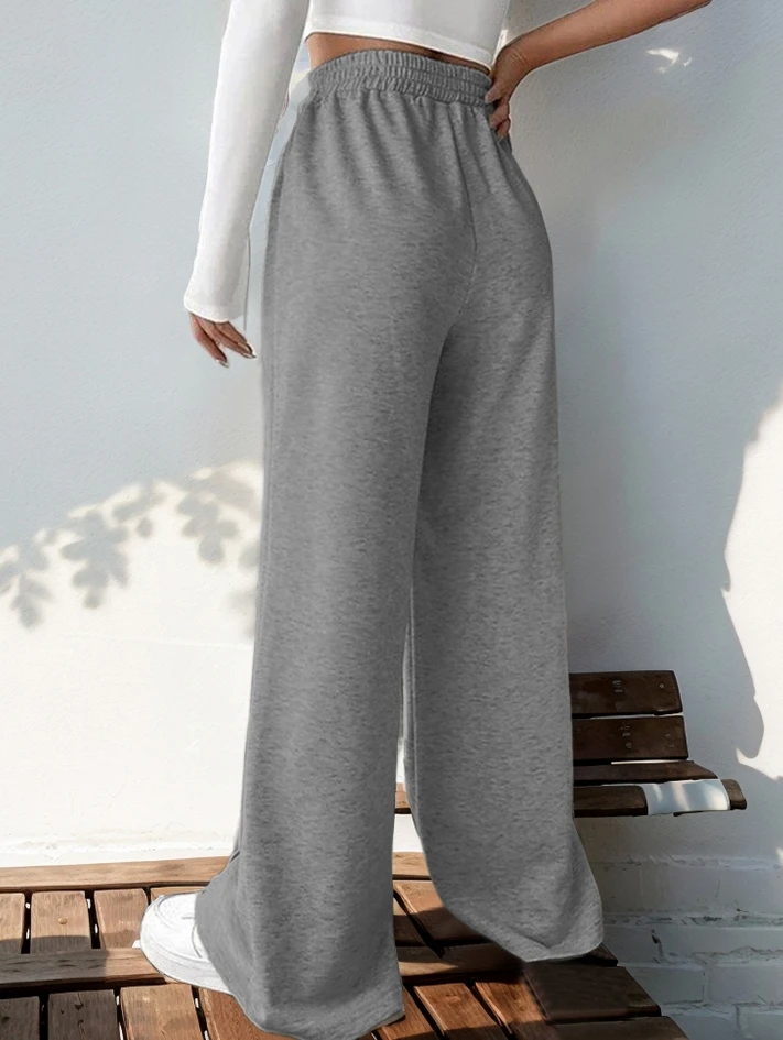 Athleisure Women's Pants Grey Loose Wide Leg Pants V-shaped High Waist Spliced Wide Leg Pants Women's Casual Loose Trouser