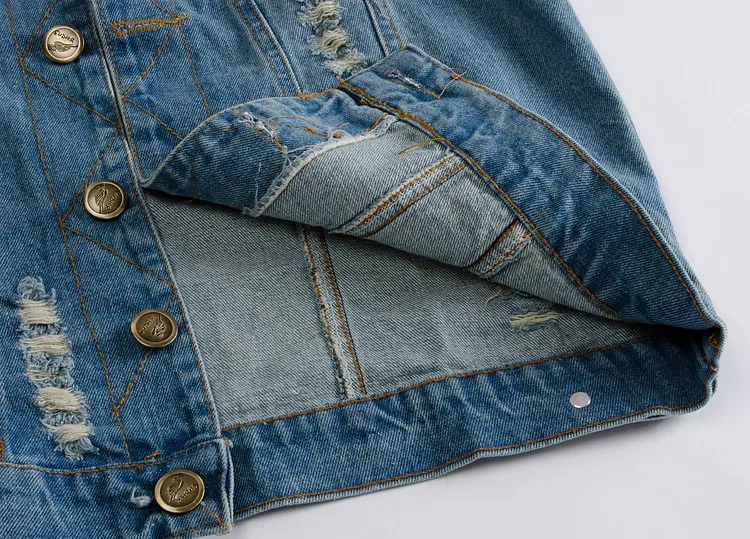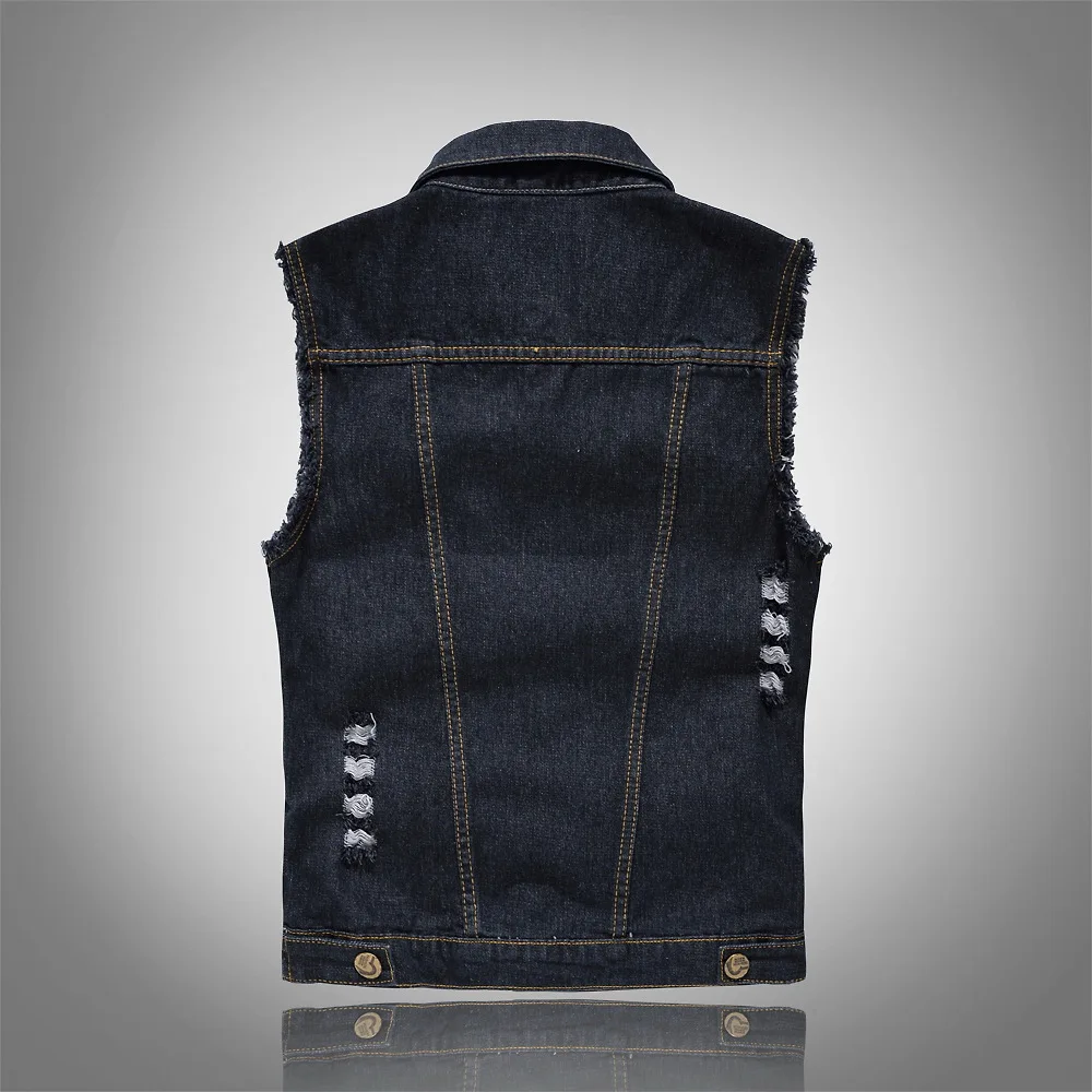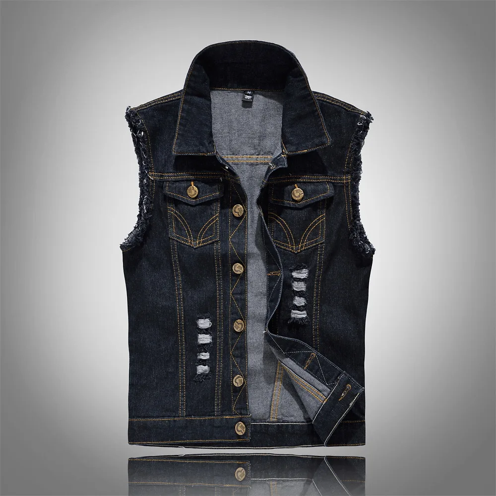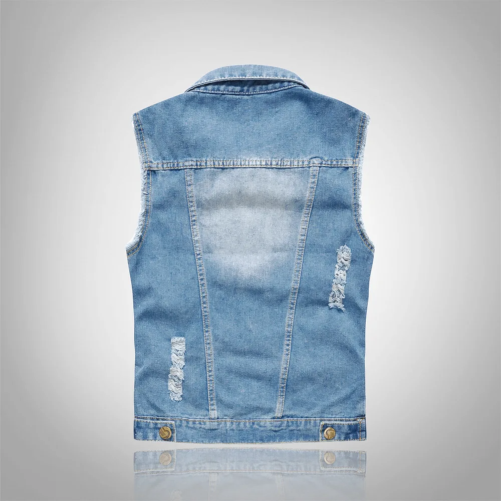 Men Denim Vests Jackets Waistcoats Light Blue Ripped Denim Coats Vests New Fashion Male Cotton Slim Black Jeans Waistcoats 6XL