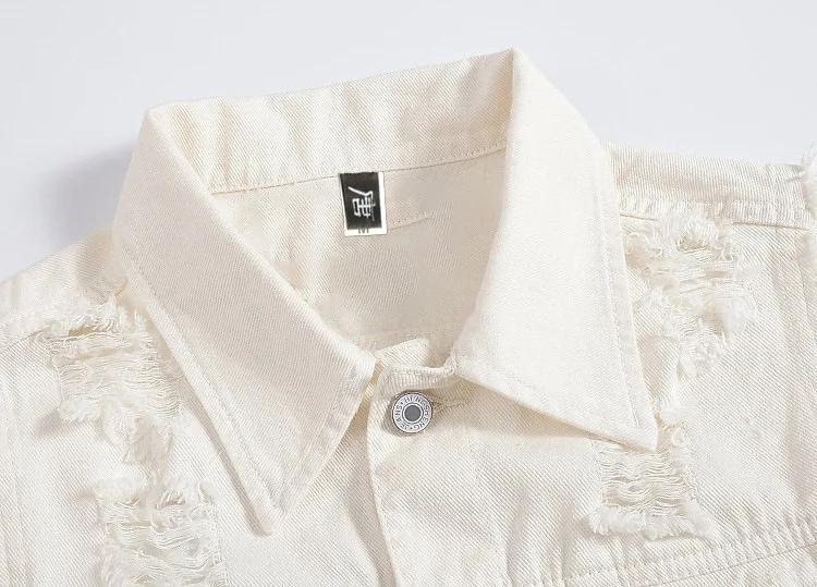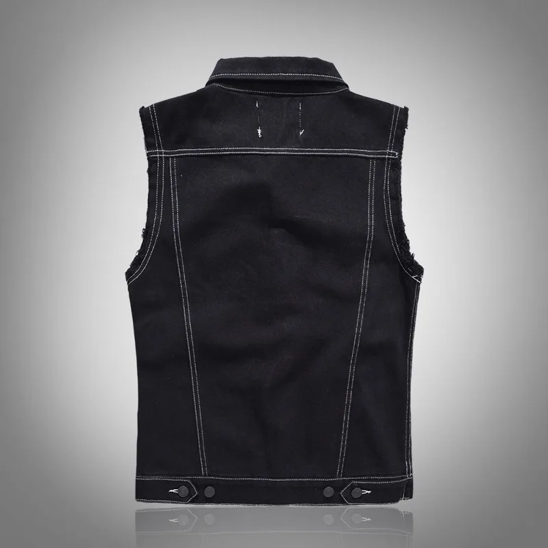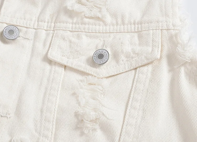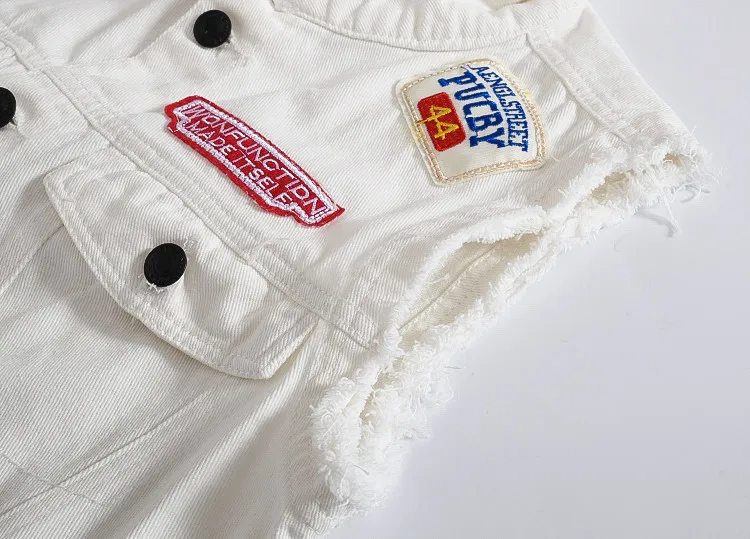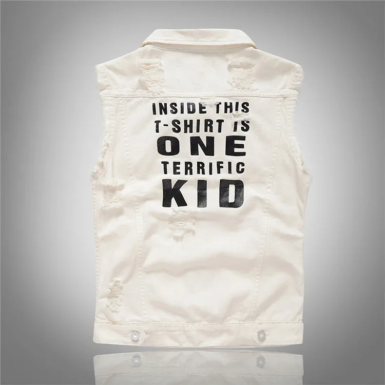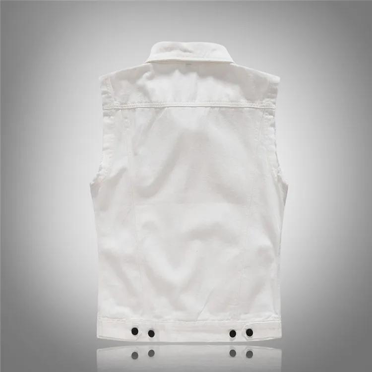 Men White Denim Vests Waistcoats Jackets New Fashion Male Slim Fit Denim Coats Vests Street Wear Holes Jeans Vests Size S-5XL