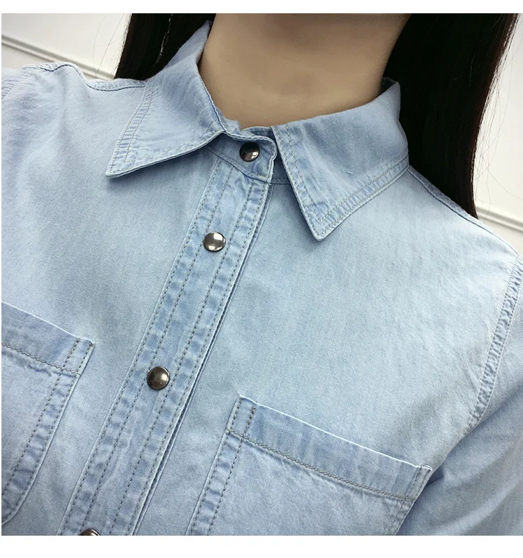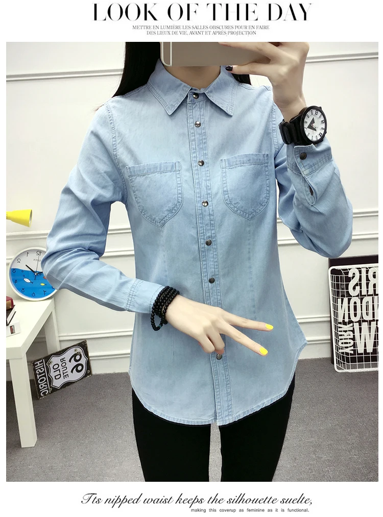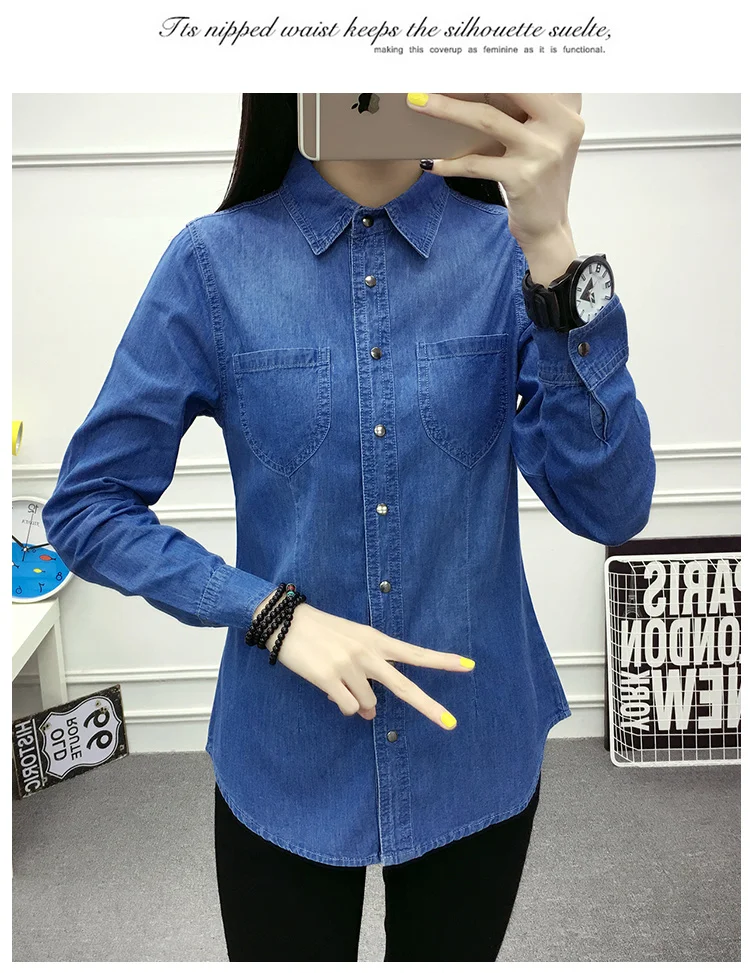 Nueva camisa vaquera para mujer, camisa vaquera a la moda de primavera con bolsillos para mujer, blusas ajustadas de manga larga para mujer, ropa para mujer