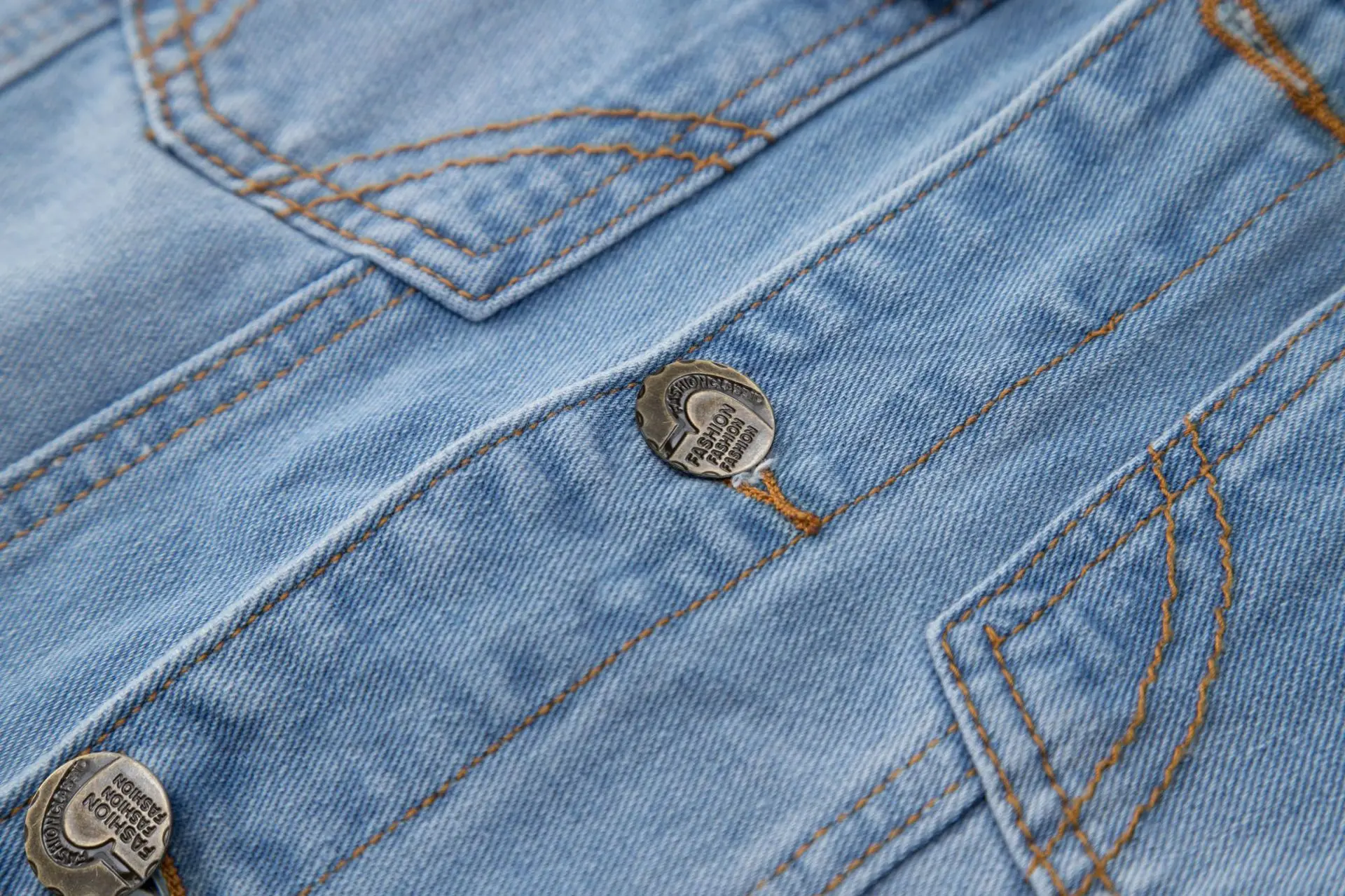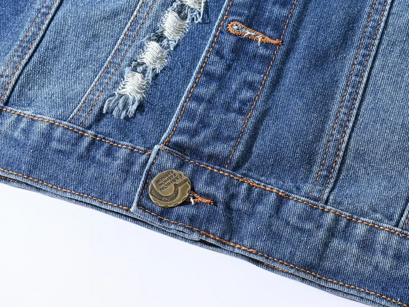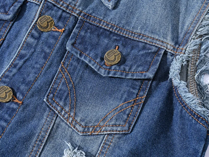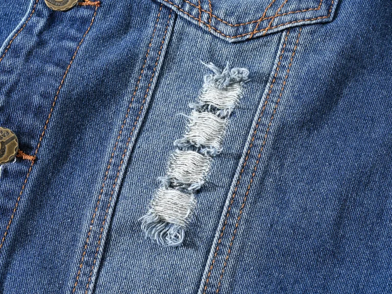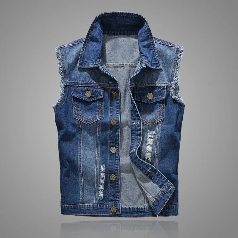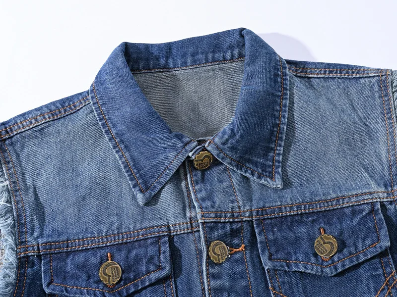New Fashion Men Ripped Denim Waistcoats Sleeveless Jackets Light Blue Holes Denim Vests Male Cotton Slim Jeans Waistcoats 6XL